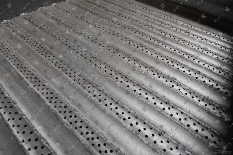 Котел КВр с водонаполненными колосниками имеет под решеткой воздушный короб с лючком для очистки короба от золы и шлака. Короб служит для распределения воздушного потока, поданного вентилятором. В нижней части конвективной поверхности находится зольный бункер с лючком для очистки его от золы. Топливо забрасывают равномерным слоем в топку через загрузочное окно, закрывающееся топочной дверцей. Выгруз шлака производят также через топочную дверцу.