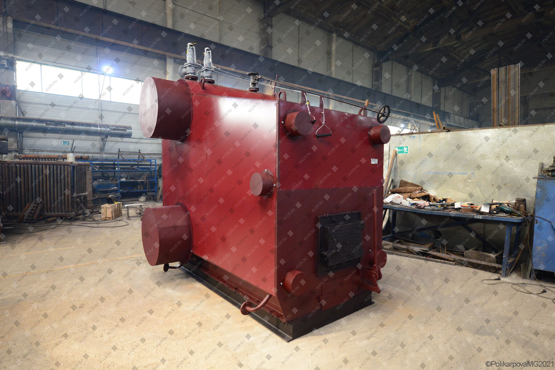 В верхней части обечайки верхнего барабана установлены штуцера для крепления пружинных предохранительных клапанов, главный пароотводящий штуцер, трубка крепления манометра, труба подвода питательной воды, внутри верхнего барабана смонтированы сепарационное устройство и труба ввода питательной воды. Трубная система собрана на общей раме.